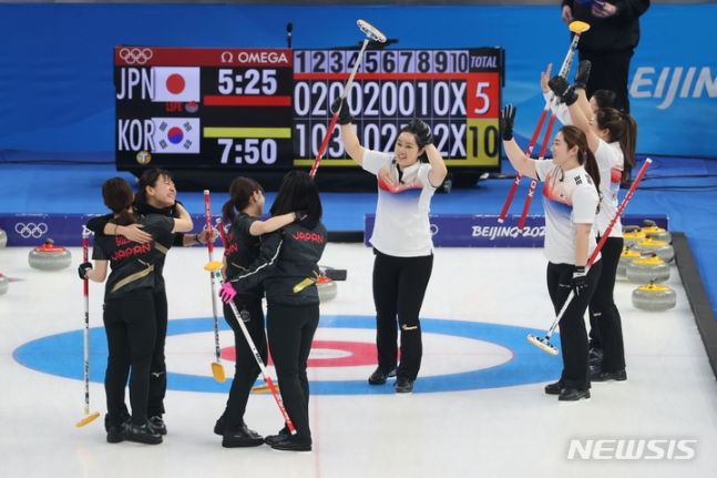 컬링 여자 국가대표 팀 킴 김은정김경애김초희김선영김영미은 14일 중국 베이징의 국립 아쿠아틱센터에서 열린 2022 베이징동계올림픽 컬링 여자 풀리그 일본과의 6차전에서 10-5로 이겼다. 2018 평창 동계올림픽 당시 은메달을 획득했던 대한민국과 동메달을 획득했던 일본. 팀 킴 스킵 김은정이 4강에서 극적으로 일본의 팀 후지사와 스킵 후지사와 사쓰키를 제압하던 순간은 대회.